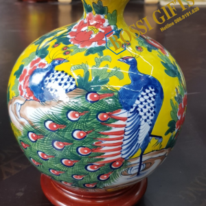 Bình hút tài lộc vẽ công, bình gốm sứ Bát Tràng – BTR02