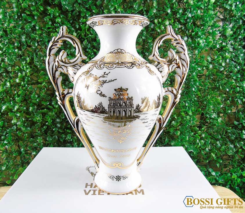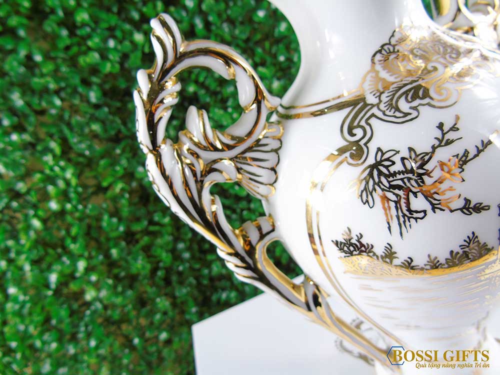 Bình sứ vẽ vàng 24K, có khả năng vừa hút Tài Lộc lại vừa giữ Tài Lộc rất tốt, đem lại nhiều may mắn, thịnh vượng và an khang cho gia chủ.