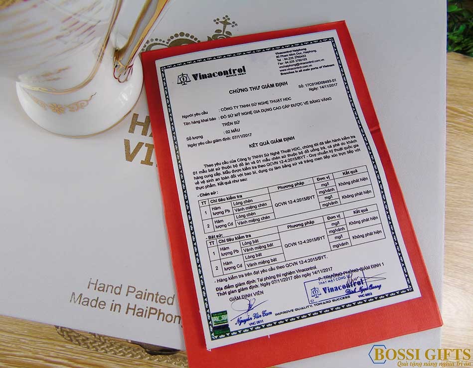 - 3 lần nung trong lò nhiệt độ cao, để chất sứ, chất men và chất vàng 24k hòa quyện thành một thể đồng nhất, không thể tách rời và bền chặt vĩnh cửu theo thời gian…