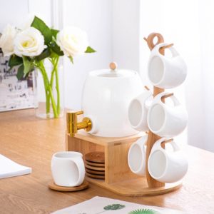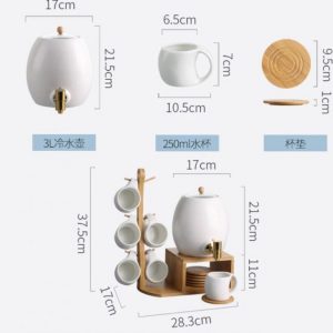 Bộ bình cốc sứ đĩa gỗ cao cấp – Trắng – Quà tặng ý nghĩa.