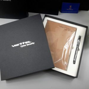 Thiết kế Bộ quà tặng 2 SP Sổ da Bút ký – Viettel Security