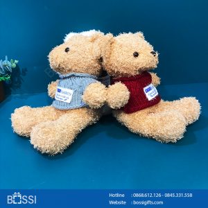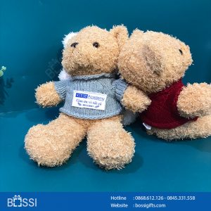 Gấu áo len quà tặng in thêu logo VTC Academy – Những bé gấu đáng yêu, vải lông và bông cao cấp.