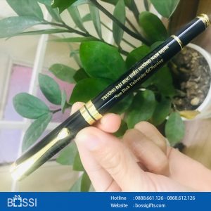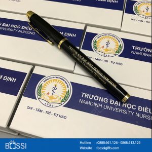- Bút ký kim loại dạ bi mực xanh in logo nhũ vàng