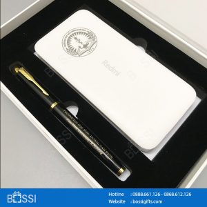 - Bộ quà tặng gồm 3 sản phẩm: bút ký, sạc dự phòng