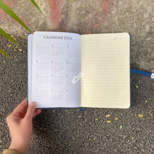 - Kích thước A5 vừa đủ, nhỏ gọn, gáy dán cài kim loại sang trọng.