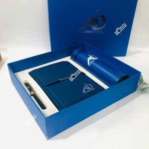 Bộ quà tặng văn phòng được Bossi thực hiện toát lên được sự sang trọng và sự chuyên nghiệp, bộ sản phẩm bao gồm:
