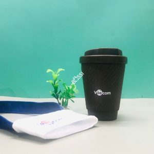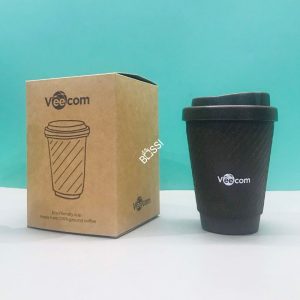 Cốc làm từ bã cafe in logo Veecom – sự tiện ích cao cho người sử dụng.