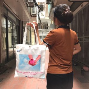 - Túi vải canvas vải bố in logo Trường TH School – Bạn có thể đeo hoặc xách tay tùy cá tính.